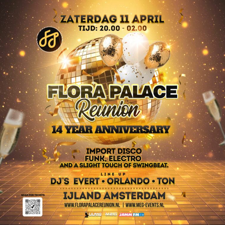 Op zaterdag 11 april 2026 keert de legendarische sfeer van de roemruchte Amsterdamse club Flora Palace terug. In de industriële en sfeervolle locatie IJland vieren liefhebbers het 14-jarig bestaan van de Flora Palace Reunion. Een avond die volledig in het teken staat van de authentieke sound die de jaren ’80 in Amsterdam definieerde.